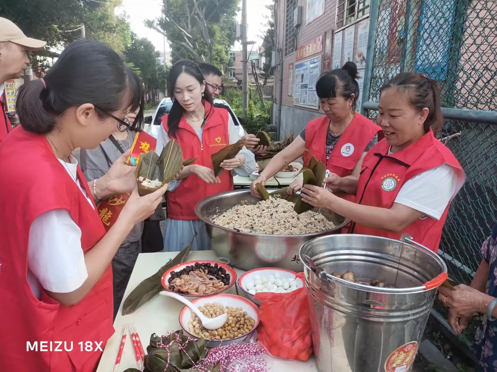 志愿者们早早准备好粽叶、糯米、红枣及包粽子所需的工具,热热闹闹地开始包粽子、煮粽子,并将包好的粽子给附近的困难老人送去,向他们致以节日的问候和祝福。