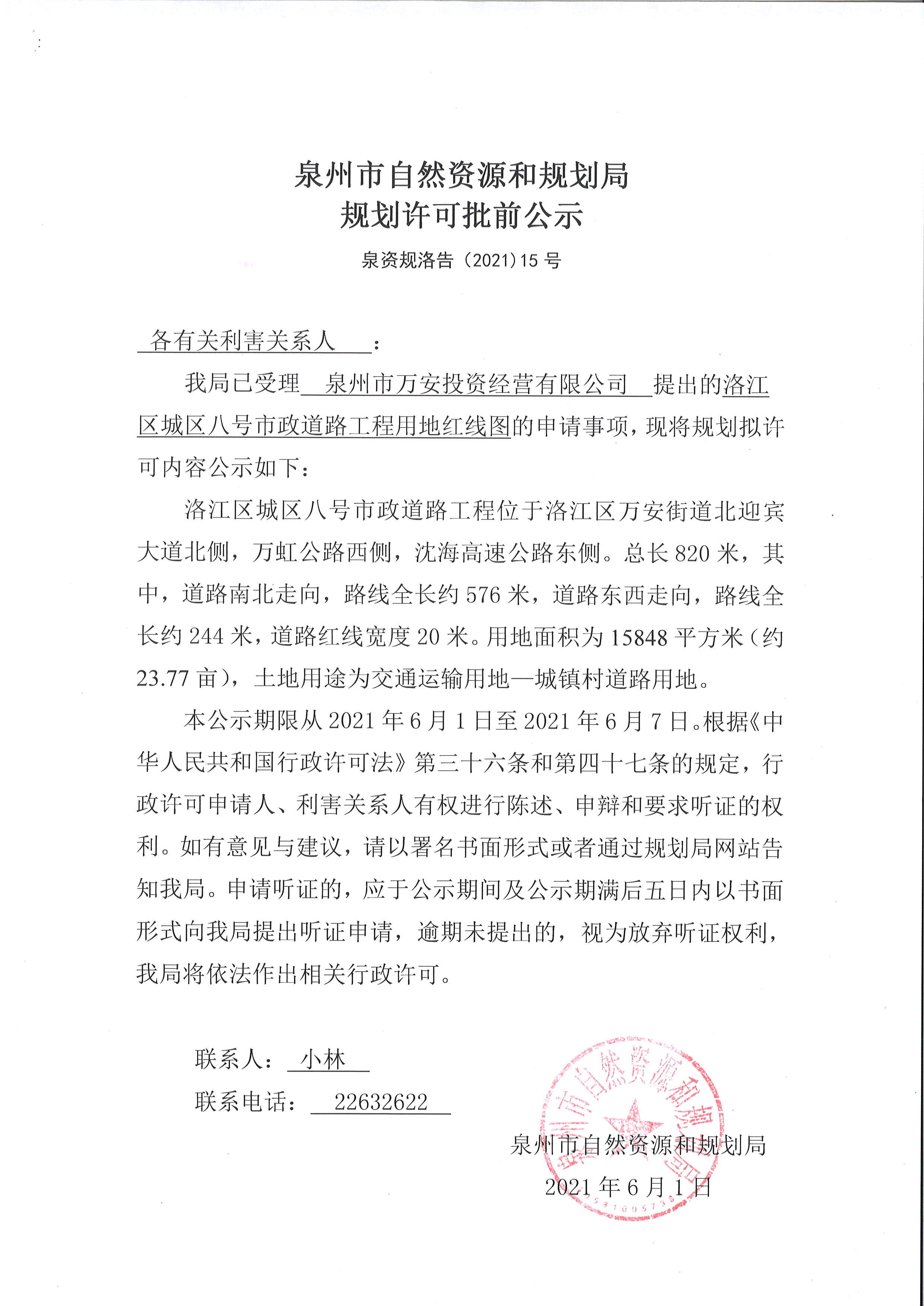 洛江区城区八号市政道路工程用地红线图批前公示