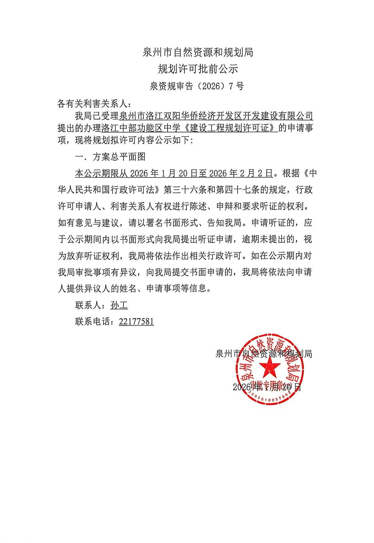 洛江中部功能区中学《建设工程规划许可证》批前公示