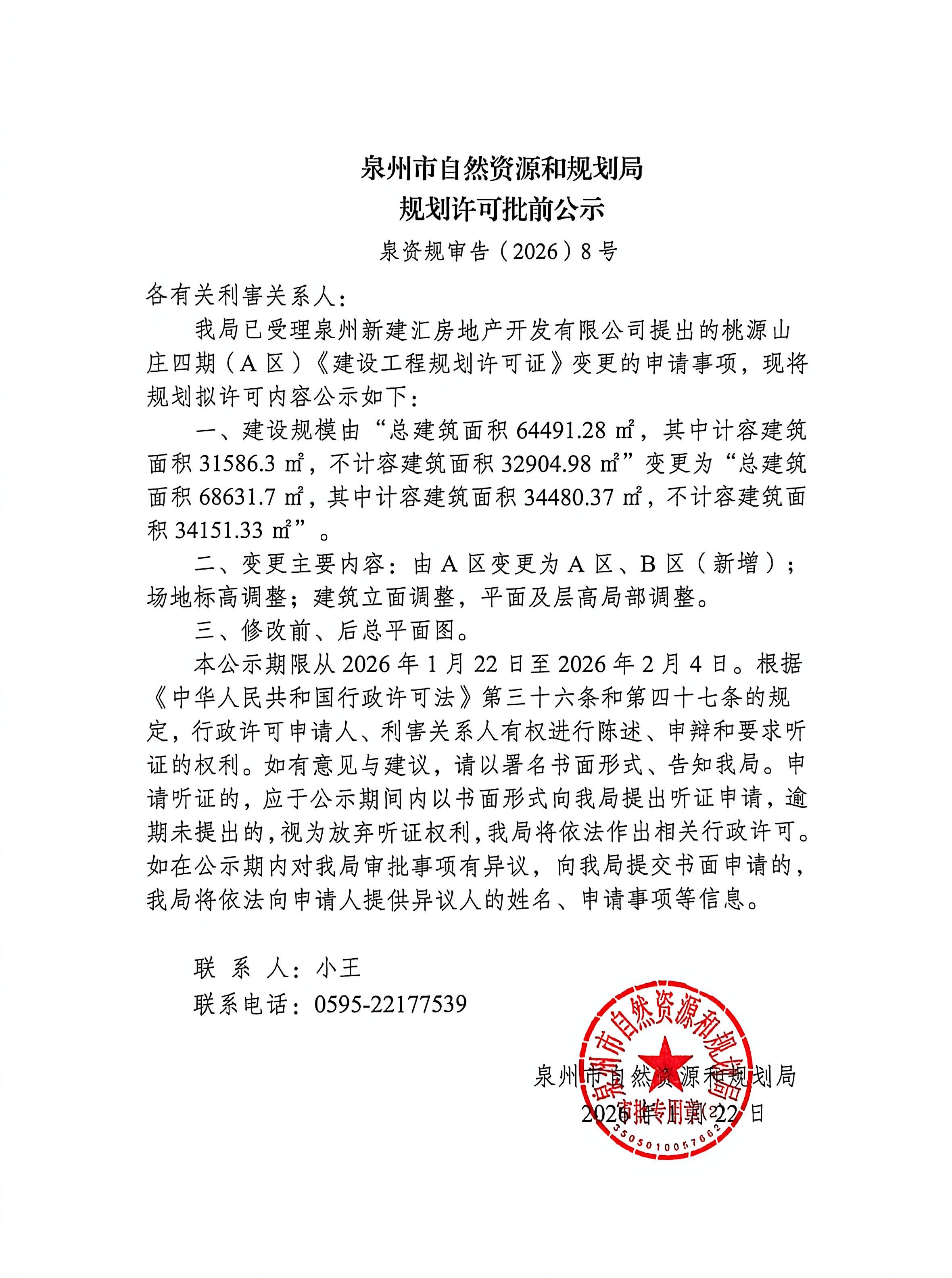 桃源山庄四期(A区)《建设工程规划许可证》变更批前公示