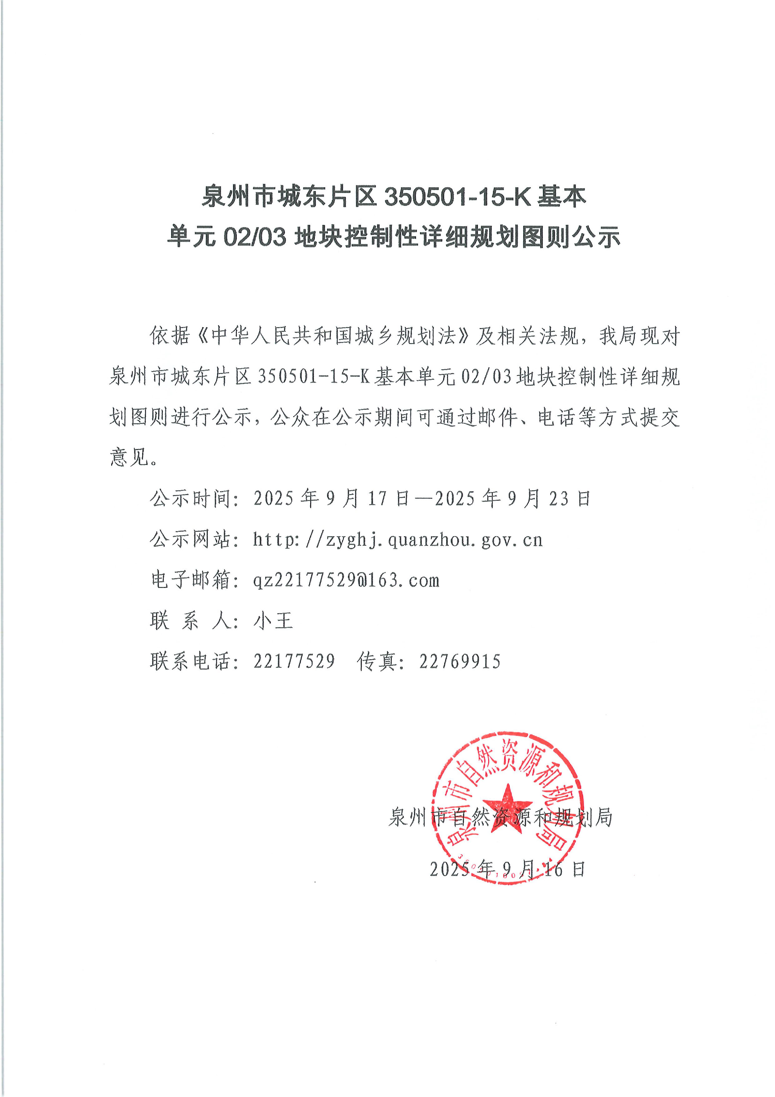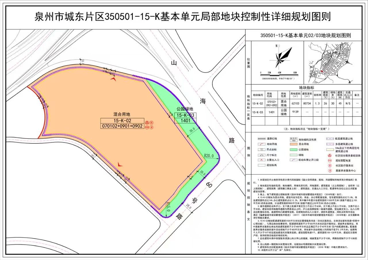 泉州市城东片区350501-15-K基本单元02、03地块控制性详细规划图则公示