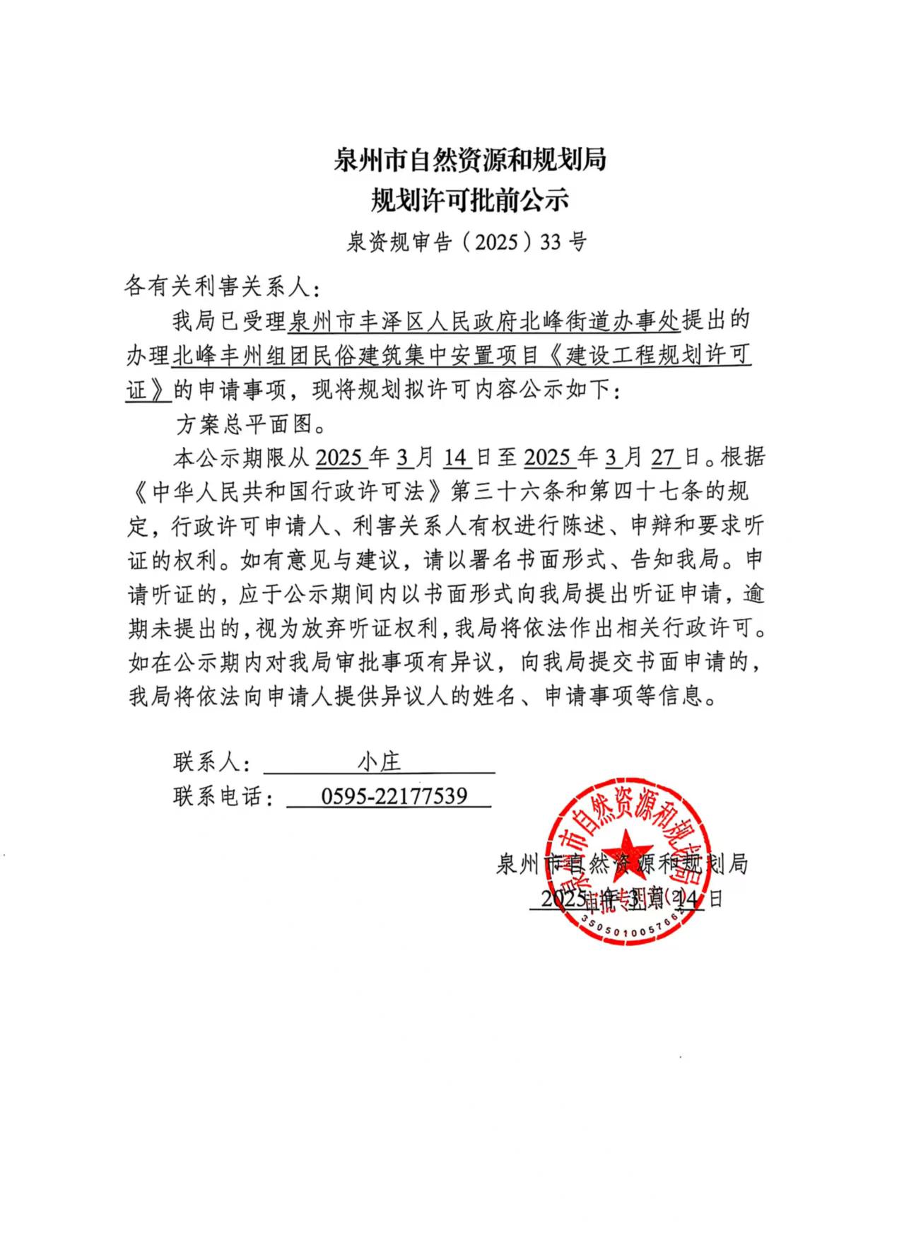 北峰丰州组团民俗建筑集中安置项目《建设工程规划许可证》批前公示