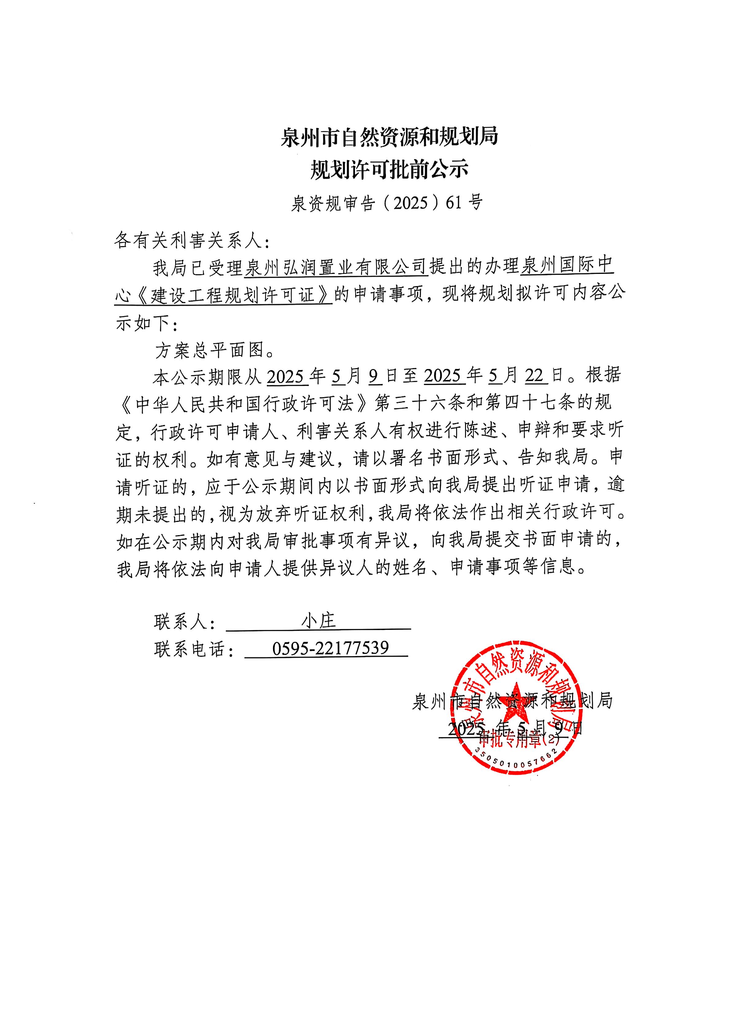 泉州国际中心《建设工程规划许可证》批前公示