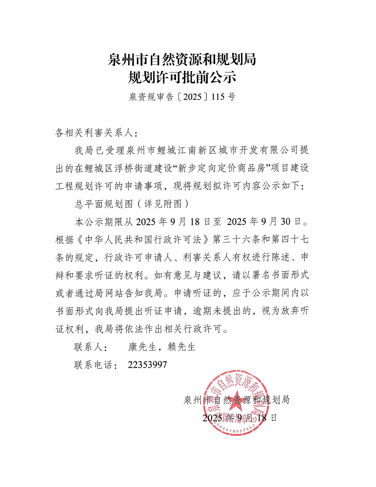 “新步定向定价商品房”项目建设工程规划许可批前公示