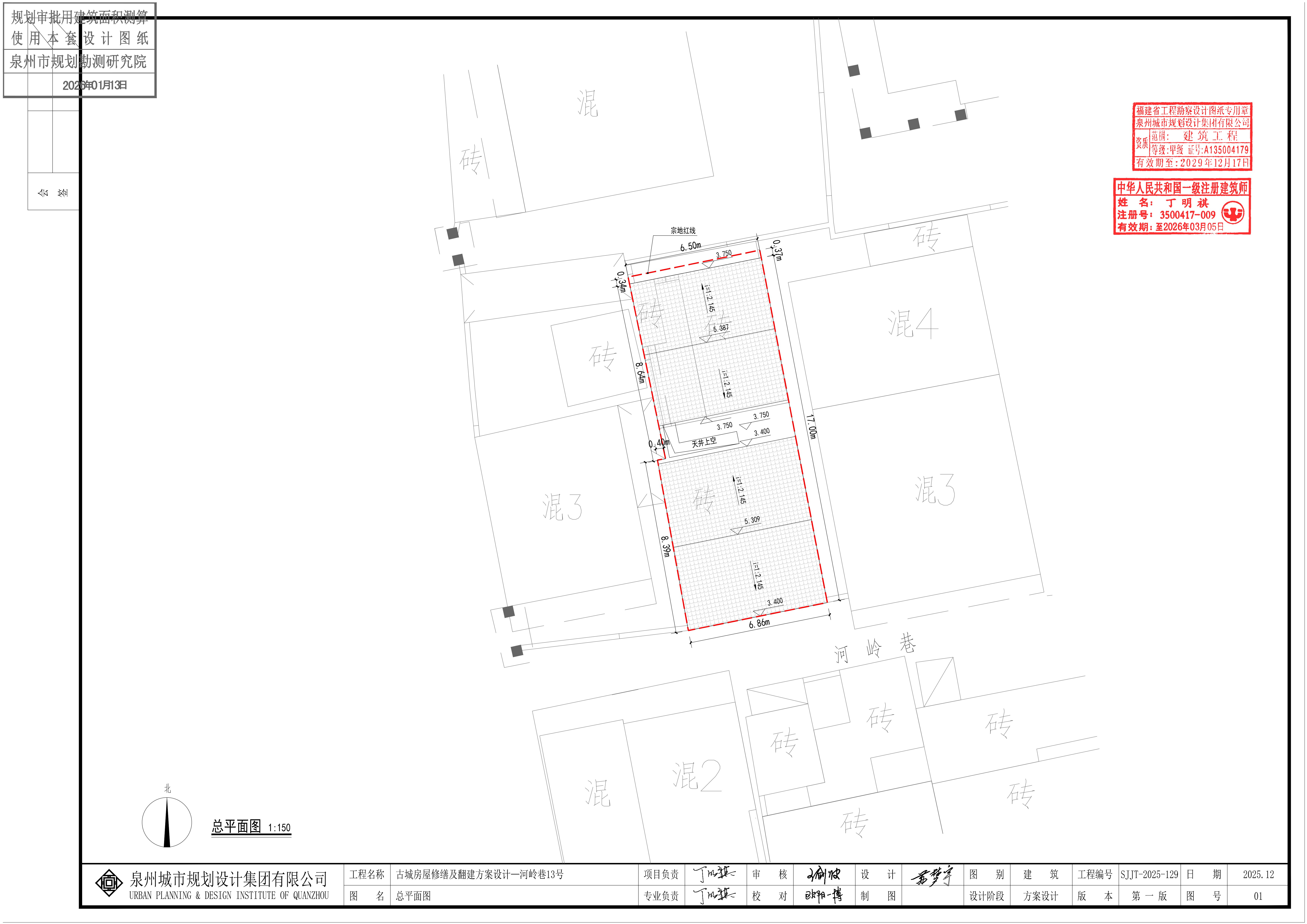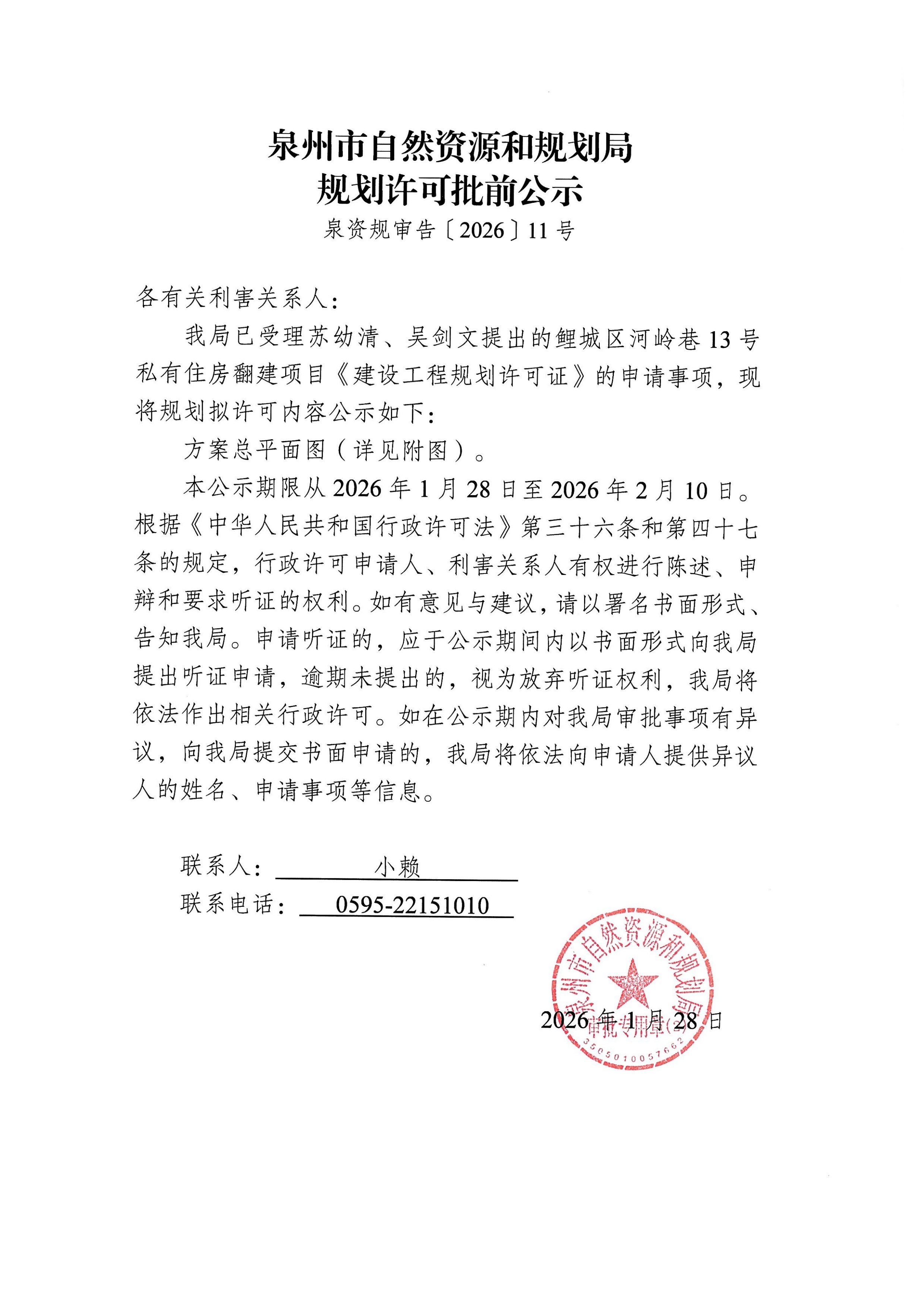 鲤城区河岭巷13号私有住房翻建项目《建设工程规划许可证》批前公示