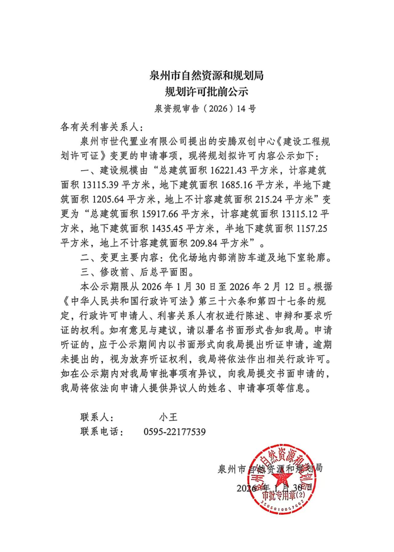 安腾双创中心《建设工程规划许可证》变更批前公示