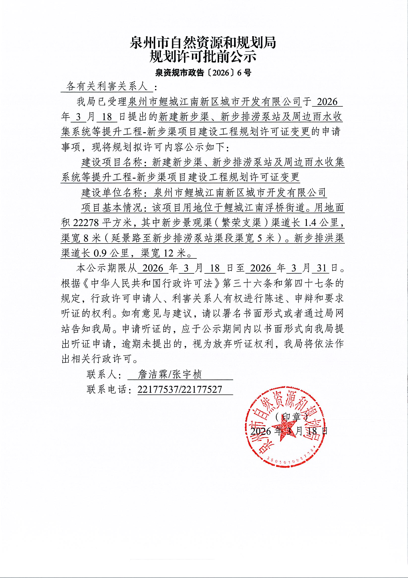 新建新步渠、新步排涝泵站及周边雨水收集系统等提升工程—新步渠项目建设工程规划许可证变更批前公示