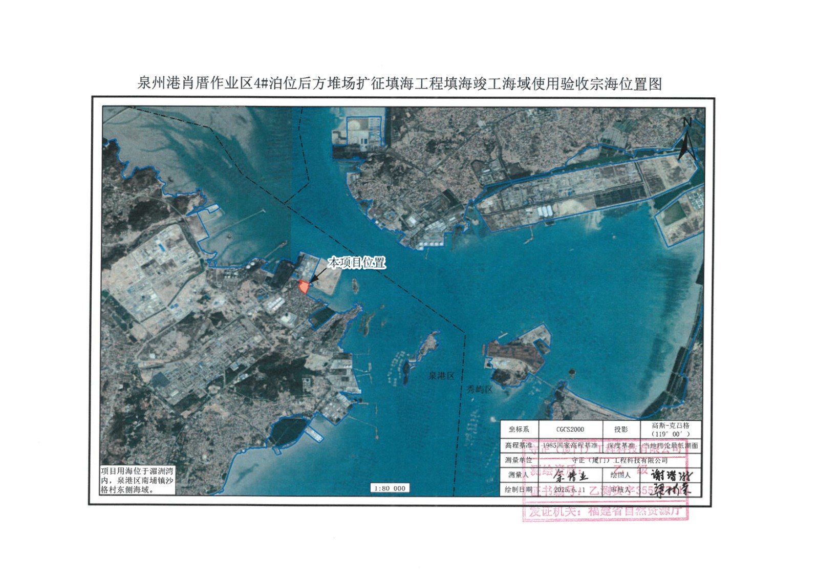 泉州市自然资源和规划局关于泉州港肖厝作业区4#泊位后方堆场扩征填海工程填海竣工海域使用验收审批信息的公告