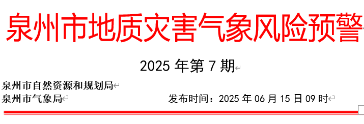 泉州市地质灾害气象风险预警(2025年第7期)